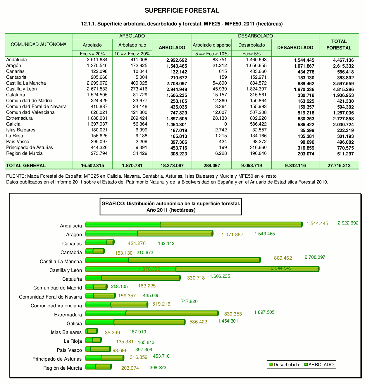 Superficie forestal en España: 27.715.213 ha (54,9% del territorio)